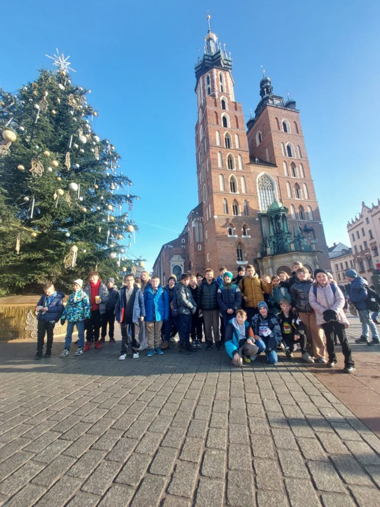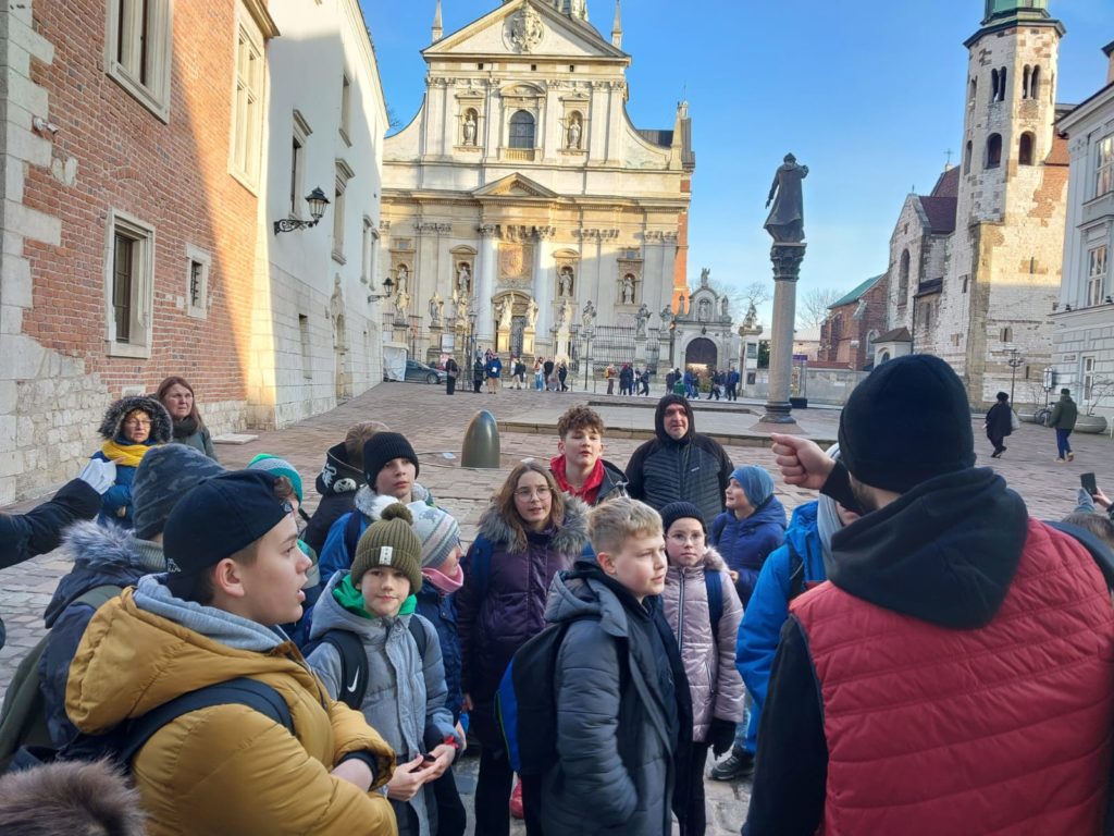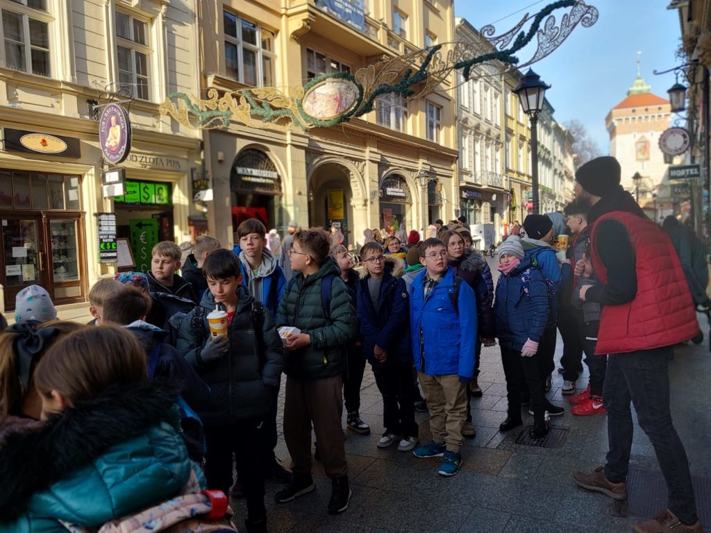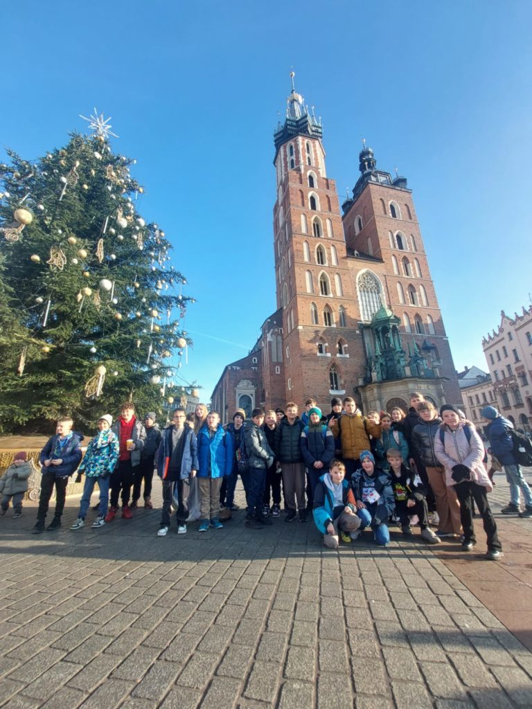 W związku z klasowymi mikołajkami uczniowie klas IV, V, VI wraz z wychowawcami i nauczycielem wspomagającym 15 grudnia 2025 roku odbyli wycieczkę do Krakowa. Wycieczkę prowadził pilot, który w czasie jazdy autobusem przybliżał uczniom wiele ciekawostek związanych z miejscami, które mijaliśmy po drodze. Również podawał wiele informacji dotyczących panoramy Beskidu Wyspowego.