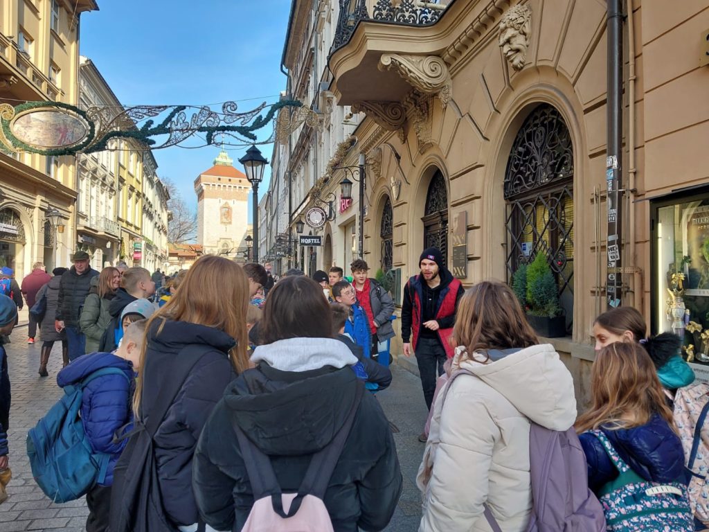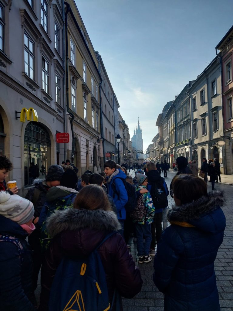 Kraków powitał nas słoneczną pogodą oraz świątecznymi dekoracjami, które tworzyły już atmosferę zbliżających się świąt Bożego Narodzenia. Pobyt w tym mieście rozpoczęliśmy od przedstawienia teatralnego pt.”Kopyta w górę” wystawionego w teatrze Kultureska. Widowisko to w humorystyczny sposób ukazało istotę oczekiwania na Boże Narodzenia oraz podkreśliło rolę św. Mikołaja, który uosabia ważne wartości oraz prowadzi do niezwykłych przeżyć związanych ze świętami.