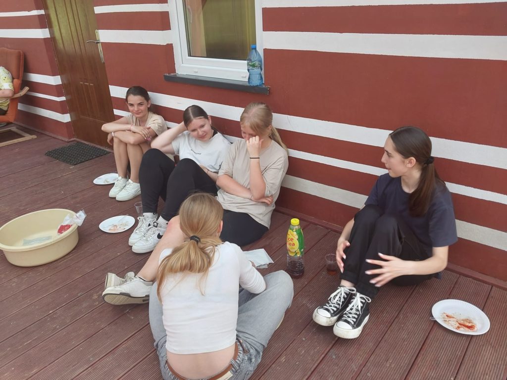 Po intensywnych aktywnościach przyszedł czas na wspólny odpoczynek przy ognisku. Dzięki zaangażowaniu pani Marty Piastusińskiej, pani Urszuli Pałki i Moniki Smagi z trójki klasowej klasy ósmej uczniowie mogli upiec kiełbaski, podzielić się wspomnieniami z minionych lat i po prostu spędzić czas razem w miłej atmosferze. Dzięki ich pracy mogliśmy spędzić ten czas w miłym, ciepłym klimacie – dosłownie i w przenośni! Wszystko przygotowane było z wielką starannością.