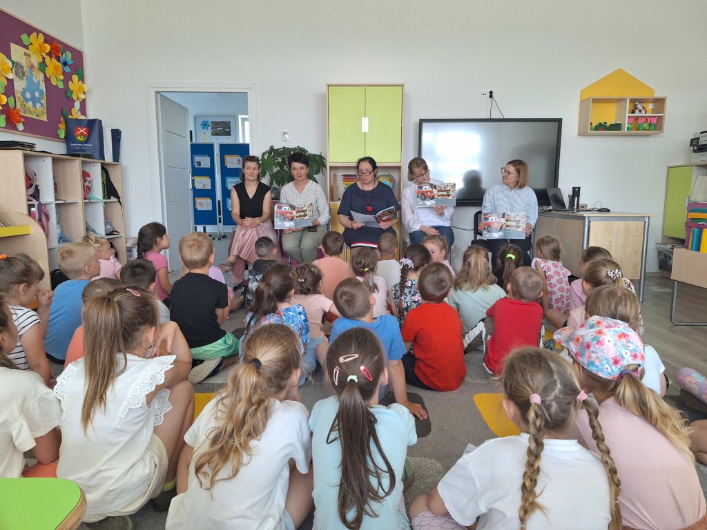 16 czerwca 2025 r. gościliśmy w Siekierczynie dzieci z oddziału przedszkolnego 0 ze Szkoły Podstawowej Nr 2 w Starej Wsi wraz z Panią Iwoną Gawlak oraz nauczycielem bibliotekarzem Dorotą Sewielską. Naszą szkołę reprezentował oddział 0 a z wychowawcą- Panią Małgorzatą Koszyk . Przy okazji promocji czytelnictwa dzieci mogły się poznać.