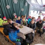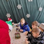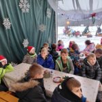 Warsztaty rozpoczęły się od wizyty w zagrodzie dla owiec. Uczniowie mieli okazję pogłaskać zwierzęta oraz je nakarmić. Poznali środowisko ich życia i dowiedzieli się, jak należy się nimi opiekować. Następnie wszyscy udali się do dużego, ogrzewanego namiotu, gdzie odbyła się dalsza część zajęć. Dzieci z zainteresowaniem słuchały opowieści o świątecznych tradycjach i symbolach. W trakcie warsztatów wykonywały kolorowe choinki, które zabrały ze sobą do domu.
