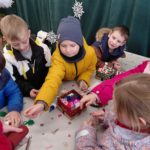 Podczas wizyty w Smoczej Osadzie nie zabrakło również czasu na zabawy na śniegu oraz przejażdżki kolorowymi wagonikami. Wielką atrakcją było spotkanie z bardzo miłym gościem – świętym Mikołajem, które wywołało wiele radości i uśmiechów na twarzach dzieci.