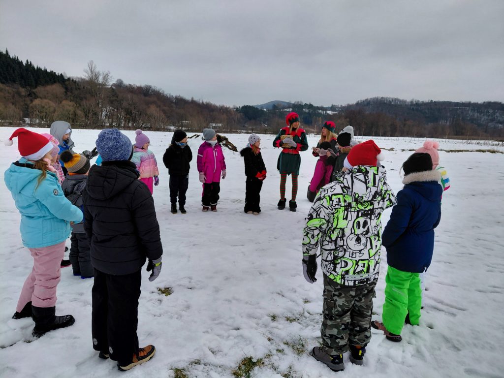 28 listopada 2025 r. uczniowie klas I–III uczestniczyli w wycieczce do Smoczej Osady w Żbikowicach. Na początku wyjazdu dzieci zostały serdecznie powitane przez właścicieli gospodarstwa i zaproszone do udziału w warsztatach świątecznych.