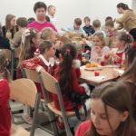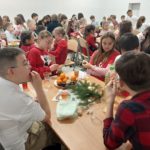 Po zakończeniu akademii pani dyrektor złożyła całej społeczności szkolnej serdeczne życzenia świąteczne, podkreślając znaczenie wspólnoty, życzliwości i radości płynącej z nadchodzących Świąt Bożego Narodzenia. Następnie cała społeczność szkolna zasiadła do wspólnej wigilii przygotowanej przez Radę Rodziców. Był to czas pełen serdecznych życzeń, wzruszeń i wspólnego kolędowania.