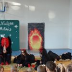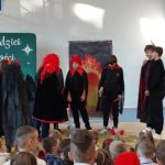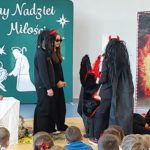 Na scenie pojawiły się anioły oraz diabły, które „stoczyły” walkę o narodzenie Pana Jezusa. Jak zawsze, także i tym razem zwyciężyło dobro, a górę wzięło niebo. Przedstawienie uświetniły kolędy w wykonaniu Jadwigi Biernat oraz Oliwii Tokarczyk.