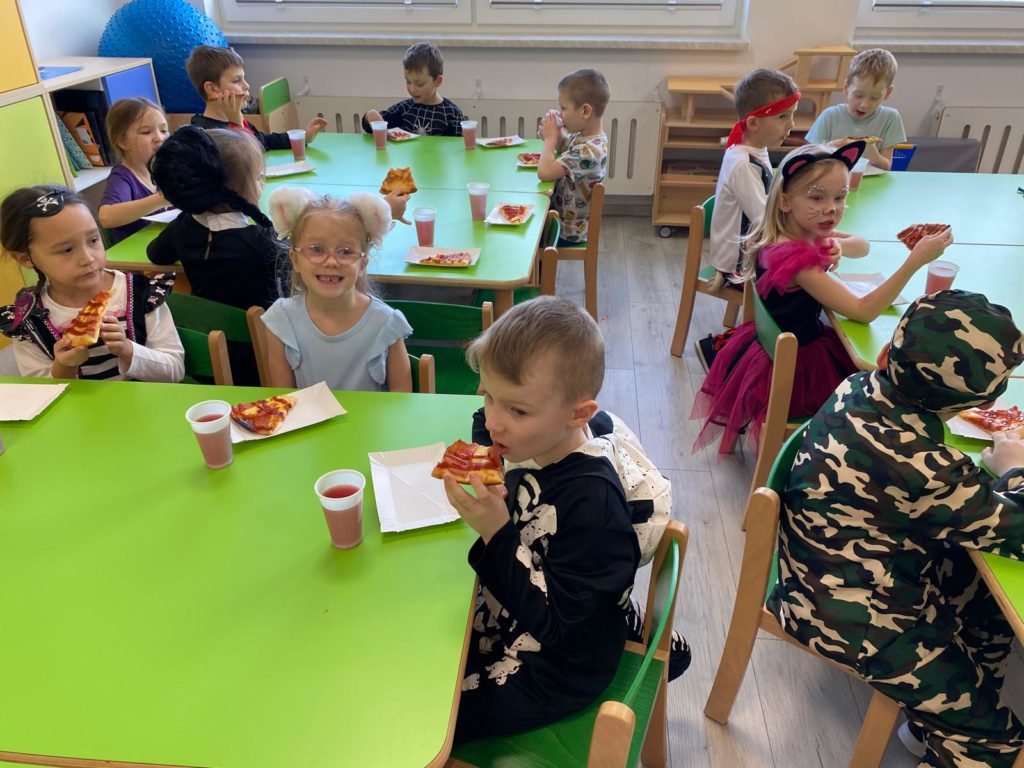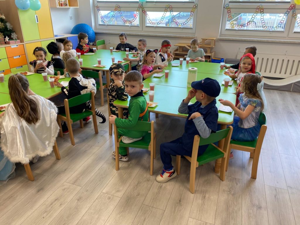 Wspólną zabawę umilił poczęstunek przygotowany przez Radę Rodziców, za co serdecznie dziękujemy. Główną atrakcją kulinarną była pizza, na którą dzieci czekały z ogromnym entuzjazmem.